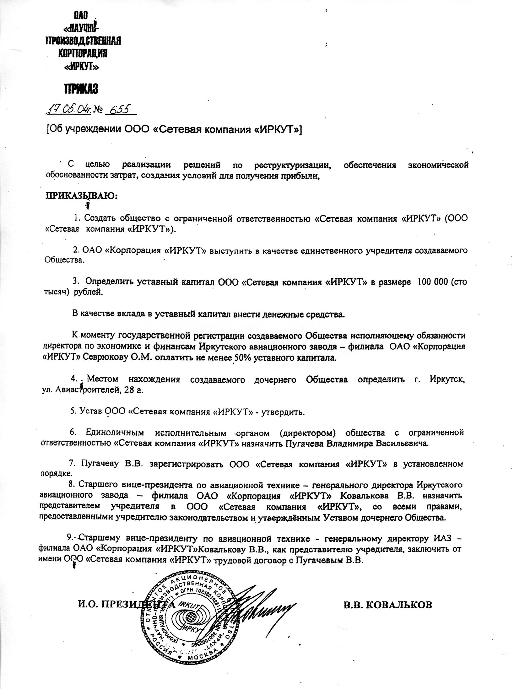 Устав ООО "Сетевая компания "ИРКУТ" (в ред. 2010г.)